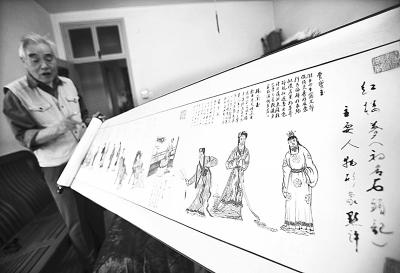 老人6年完成巨幅画卷"红楼梦" 刻画人物700多个