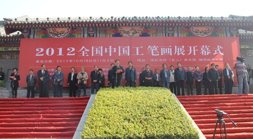 金秋十月,丹桂飘香。“2012全国中国工笔画展”在文化古城河北沧州名人植物园名人堂前隆重开幕。带有地方特色的沧州市民间文艺展演和沧州市非物质文化遗产(国家级)展示活动也同地同时举行,极大地丰富和增强了此次画展的观赏性和艺术性。