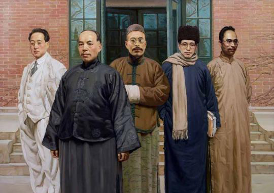 其中,油画部分将有著名画家陈丹青人文力作《国学研究院》华丽登场。据悉,该作品创作于2001年,是陈丹青为庆祝清华大学90周年校庆所作。同时,这也是他任职于清华大学五年中唯一的大幅作品(187×223cm)。作品描绘了五位在中国近代学术史上具有重要影响的学术大师,画家将五人在画面上一字排开,这也是陈丹青的典型构图之一。从左向右依次为:赵元任、梁启超、王国维、陈寅恪、吴宓。