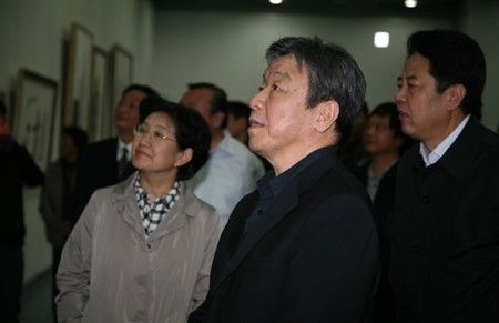 河南省委书记卢展工在省文化厅厅长杨丽萍等人的陪同下参观展览