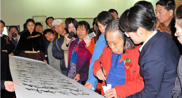 开幕式结束后,高东岳现场展示了自己的空中飞笔和左手倒书的绝技,引得现场众多书法爱好者阵阵喝彩。高东岳表示,作为高凤翰的后人,自己的根在青岛,来青岛办展也是多年来的夙愿,希望能与当地艺术家多多交流。据悉,此次展览将持续到本月25日。