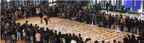 11月18日,“书法道——王冬龄书法现场”活动在位于杭州的中国美术学院象山校区体育馆举行。王冬龄在6.6米乘15米的巨幅宣纸上书写《兰亭集序》。这是王冬龄为学校1000多名大一新生进行的一场现场教学,他希望以这种方式让新生了解中国传统文化的精髓。
