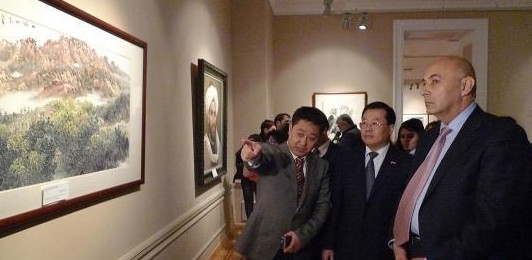 “彩绘丝路——中国当代著名美术家作品展”11日在阿塞拜疆国家艺术博物馆开幕,展览是中国当代美术家从中国长安出发,重走丝绸之路后创作的艺术精品的集中展示,也是2012年末中国积极开展文化外交的重要文化项目。